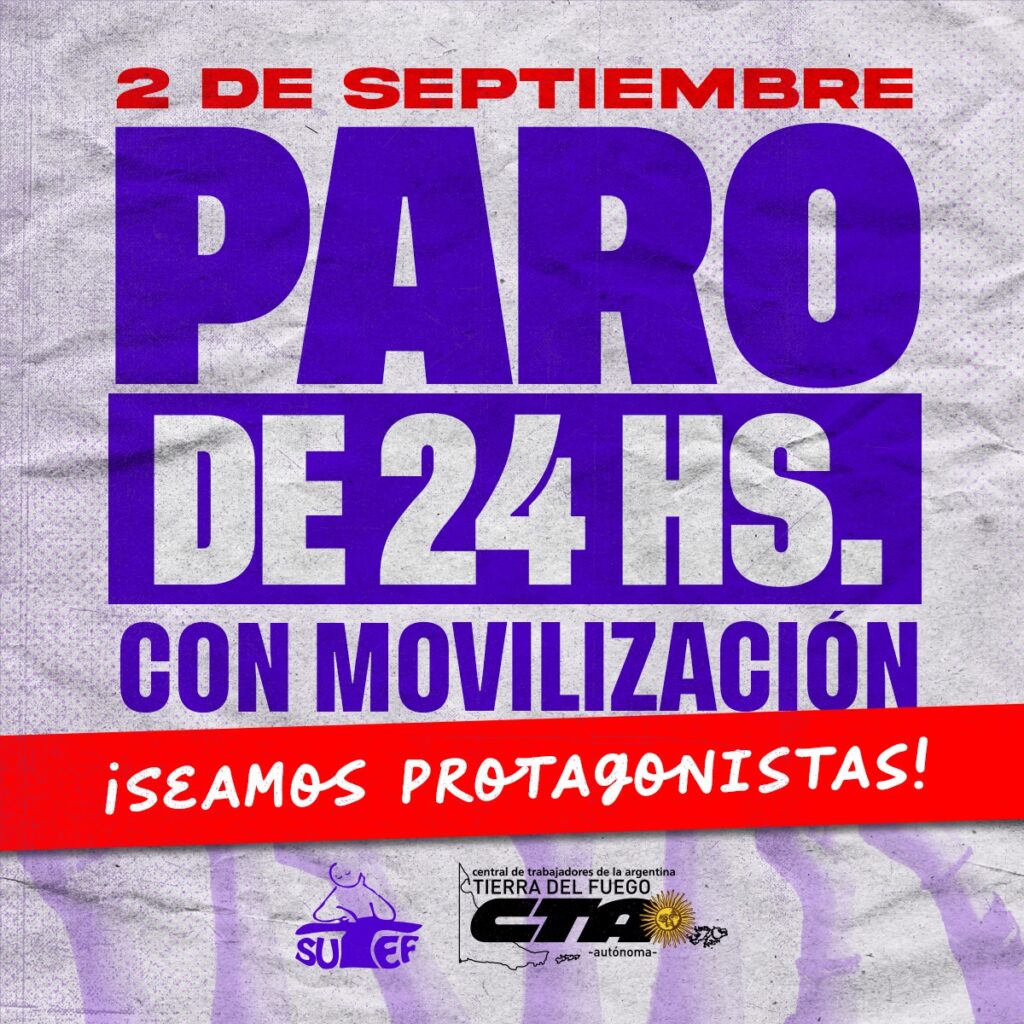 – Paro de 24 hs. y movilización para el día jueves 2 de septiembre