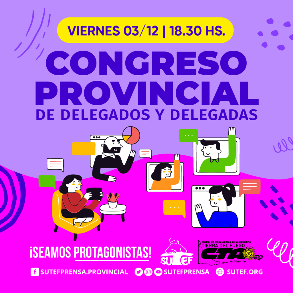 GremialesConvocatorias03/12- SUTEF convoca a Congreso Provincial de delegadas y delegados VIRTUAL 03/12- SUTEF convoca a Congreso Provincial de delegadas y delegados VIRTUAL publicado el 2 diciembre, 2021 FacebookTwitterPinterestWhatsAppEmailImpresiónTelegramCopy URL 💬 SUTEF convoca a Congreso Provincial de delegadas y delegados VIRTUAL🗓 Viernes 3 de diciembre a las 18.30 hs.📲 Para participar pedí el link al Secretarix Gremial de tu Seccional ¡Seamos Protagonistas! SUTEF junto a las y los docentes ¡SIEMPRE! Últimos artículos IX Congreso Pedagógico Provincial Conversatorio «Presente y futuro del trabajo docente» El pasado 31 de octubre, en el marco del IX Congreso Provincial de Educación... 9 diciembre, 2025 Convocatorias SUTEF convoca a congreso provincial de delegadas y delegados presencial en Tolhuin El Sindicato Unificado de Trabajadoras y Trabajadores de la Educación Fueguina (SUTEF) convoca a... 9 diciembre, 2025 Más publicaciones Convocatorias SUTEF convoca a congreso provincial de delegadas y delegados presencial en Tolhuin El Sindicato Unificado de Trabajadoras y Trabajadores de la Educación Fueguina (SUTEF) convoca a... 9 diciembre, 2025 Convocatorias SUTEF convoca a plenarios presenciales en las tres ciudades 📝 Desde la Secretaría Gremial Provincial del SUTEF se convoca a Plenario Presencial en... 26 noviembre, 2025 Convocatorias 08/10 – SUTEF convoca a congreso provincial de delegadas/os El Sindicato Unificado de Trabajadoras y Trabajadores de la Educación Fueguina (SUTEF) convoca a... 8 octubre, 2025