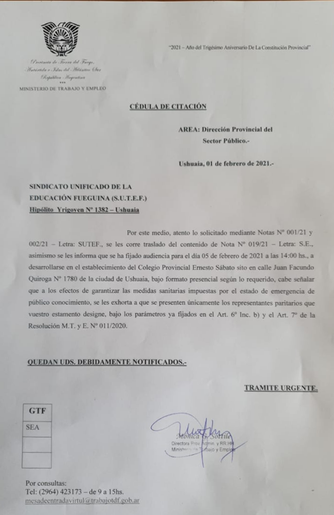 En el día de la hoy, lunes 1 de febrero el Ministerio de Trabajo notificó formalmente la fecha de la primera paritaria del sector docente. La misma se llevará adelante el día 5 de febrero a las 14 horas.
