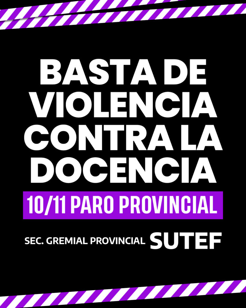 Ante los graves hechos de violencia sucedidos en múltiples instituciones educativas de la provincia, el congreso provincial de delegadas y delegados resolvió paro provincial de 24 horas para este lunes 10 de noviembre.