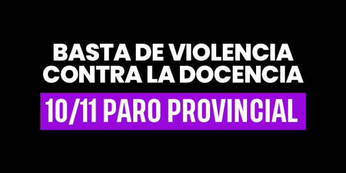 📅 Lunes 10/11 📢 Paro provincial de 24 hs. 🛑 ¡Basta de violencia contra la docencia!