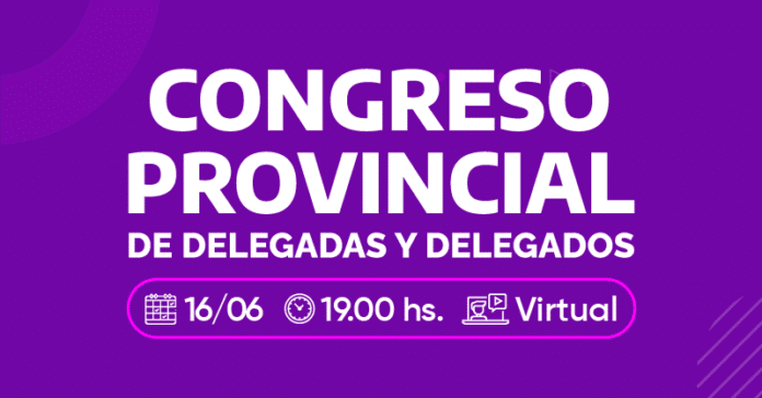 Al finalizar la misma se realizará un Congreso Provincial de Delegadas y Delegados Virtual a las 19.00 horas.