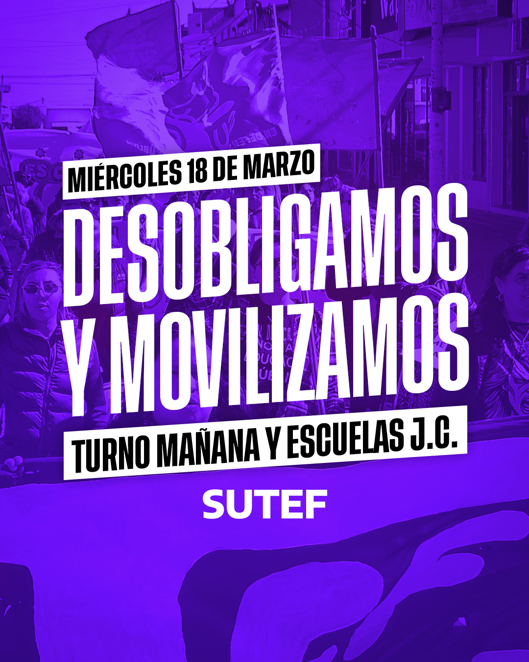 📢 Este miércoles 18 de marzo desobligamos en el TURNO MAÑANA junto a las ESCUELAS DE JORNADA COMPLETA en defensa de nuestra obra social OSEF ¡Es de las trabajadoras y trabajadores!¡No de quienes se la apropiaron con el paquetes de leyes de Bertone, ni de los Gobiernos de turno que la desfinanciaron y licuaron su deuda!