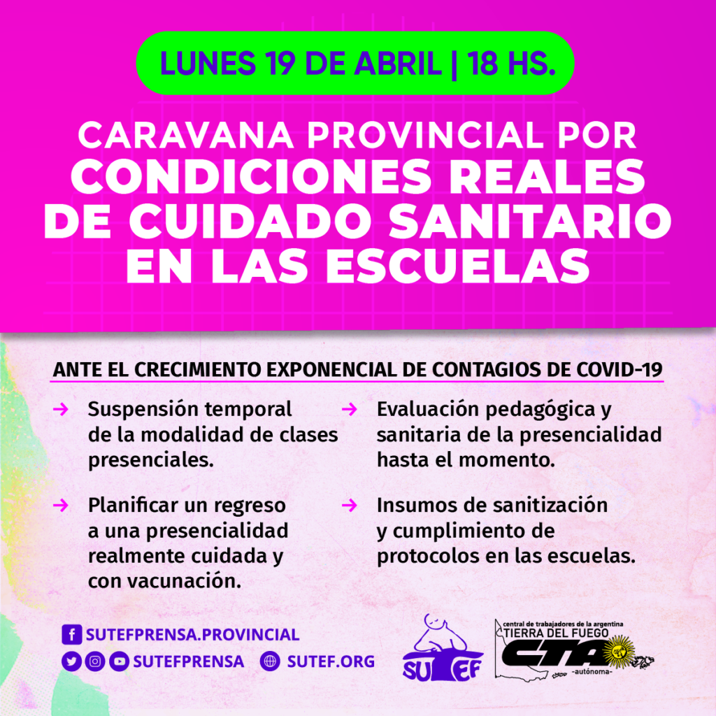 Por clases realmente cuidadas, por el cuidado de la salud y la vida de docentes, no docentes, estudiantes y sus familias. Ante el avance de la segunda ola: