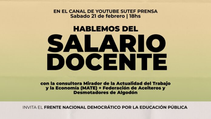 - El valor del trabajo docente que debe reflejarse en el SALARIO que percibimos; y para explicarlo contaremos con la Consultora Mate y dirigentes de la Federación de Aceiteros y Desmotadores de Algodón, quienes expondrán sobre el alcance del Salario Mínimo Vital y Móvil más abarcador que la Canasta básica hoy desdibujada totalmente partiendo de los índices inexactos del INDEC.