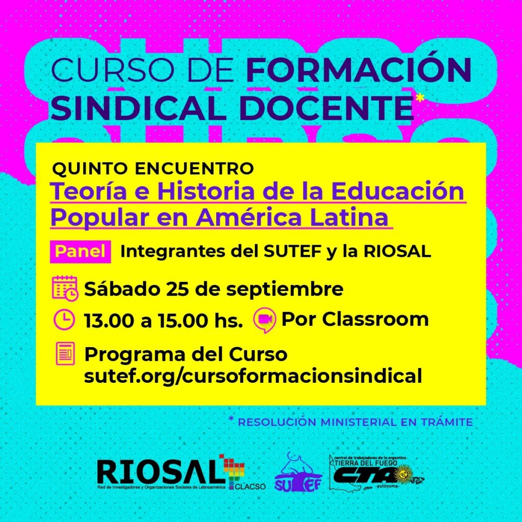 📆 Sábado 25/09 5to encuentro del Curso de Formación Sindical Docente SUTEF-RIOSAL