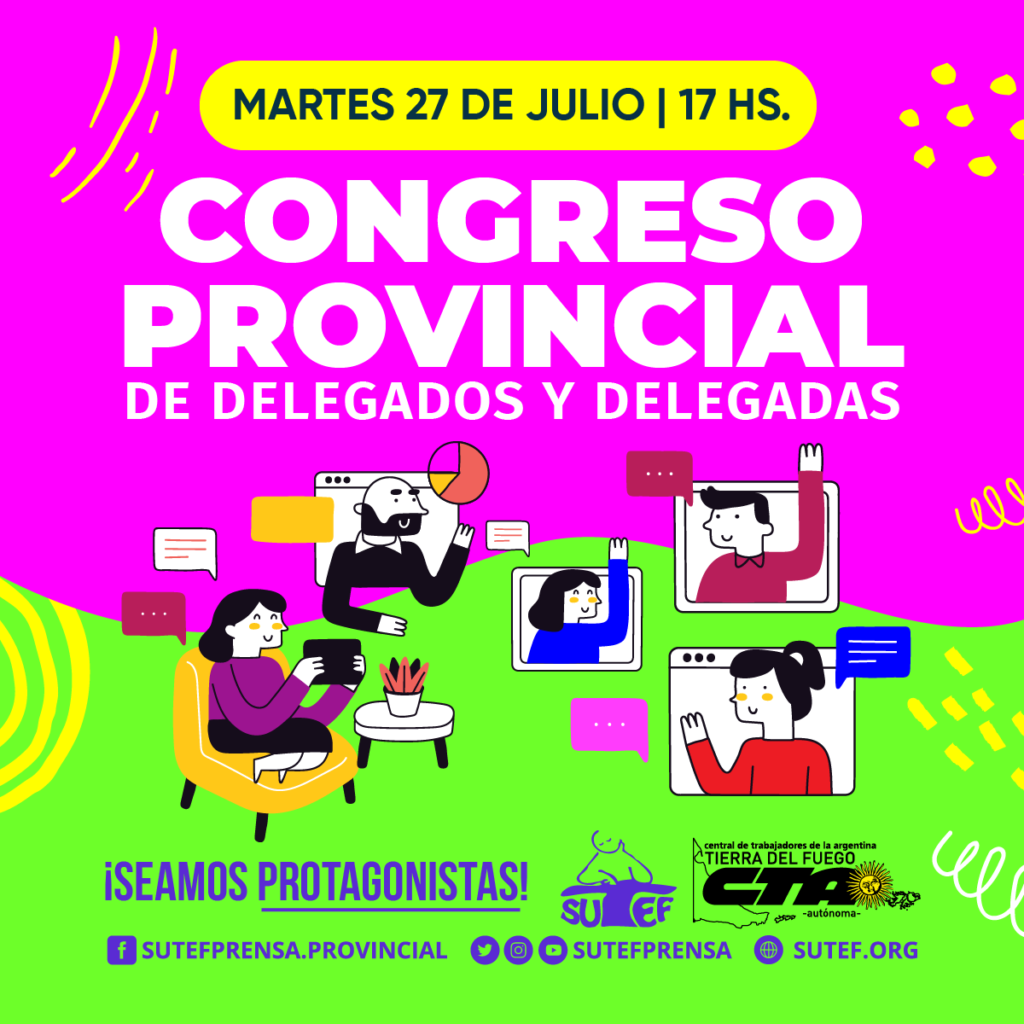 GremialesConvocatorias27/07 - Congreso de delegadas, delegados y referentes 27/07 – Congreso de delegadas, delegados y referentes publicado el 26 julio, 2021 FacebookTwitterPinterestWhatsAppEmailImpresiónTelegramCopy URL ♦️SUTEF CONVOCA a Congreso de delegadas, delegados y referentes🗓 Martes 27 de julio a las 17 hs.📲 Para participar pedí el link al Secretarix Gremial de tu Seccional o al Secretario Gremial Provincial Últimos artículos Comunicados / Informes / Noticias 06/11 – SUTEF convoca a congreso provincial de delegadas/os El Sindicato Unificado de Trabajadoras y Trabajadores de la Educación Fueguina (SUTEF) convoca a... 5 noviembre, 2025 Comunicados / Informes / Noticias Frente a otro hecho de violencia, el Jardín 18 se declara en estado de alerta y asamblea permanente Desde el Sindicato Unificado de Trabajadoras y Trabajadores de la Educación Fueguina (SUTEF) repudiamos... 5 noviembre, 2025 Más publicaciones Convocatorias 08/10 – SUTEF convoca a congreso provincial de delegadas/os El Sindicato Unificado de Trabajadoras y Trabajadores de la Educación Fueguina (SUTEF) convoca a... 8 octubre, 2025 Convocatorias 02/10 – SUTEF convoca a congreso provincial de delegadas/os El Sindicato Unificado de Trabajadoras y Trabajadores de la Educación Fueguina (SUTEF) convoca a... 2 octubre, 2025 Convocatorias SUTEF convoca a congreso provincial de delegadas/os en Tolhuin El Sindicato Unificado de Trabajadoras y Trabajadores de la Educación Fueguina (SUTEF) convoca a... 25 septiembre, 2025