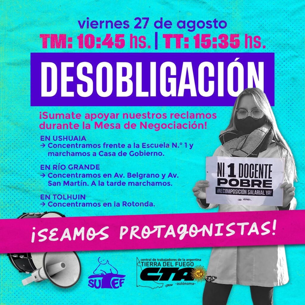 ✊ Este viernes 27 de agosto protagonicemos la jornada de lucha ¡Participá de la desobligación y concentración en las tres ciudades!¡Sumate apoyar nuestros reclamos durante la Mesa de Negociación!
