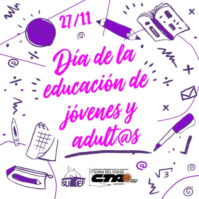NivelesSecundaria y Superior27 de noviembre, Día de la Educación para Adultas/os y jóvenes 27 de noviembre, Día de la Educación para Adultas/os y jóvenes publicado el 27 noviembre, 2020 FacebookTwitterPinterestWhatsAppEmailImpresiónTelegramCopy URL Reconocimiento, mención y orgullo de docentes que llevan adelante tan amorosa y profesional tarea. Vaya nuestro saludo a toda la comunidad educativa que sostiene y acompaña a l@s estudiantes. Últimos artículos Comunicados / Informes / Noticias Cambio de horario y lugar de conferencia de prensa frente a la violencia contra la docencia El Sindicato Unificado de Trabajadoras y Trabajadores de la Educación Fueguina (SUTEF) se dirige... 9 noviembre, 2025 Comunicados / Informes / Noticias 10/11 Paro provincial de 24 hs. ¡Basta de violencia contra la docencia! 📅 Lunes 10/11 📢 Paro provincial de 24 hs. 🛑 ¡Basta de violencia contra... 8 noviembre, 2025 Más publicaciones Junta de Clasificación y Disciplina Nivel Secundario Nivel Secundario: cronograma Listado Complementario de Aspirantes a cubrir Interinatos y Suplencias Las representantes gremiales de SUTEF en la Junta de Clasificación y Disciplina del Nivel... 15 mayo, 2025 Secundaria y Superior SUTEF pidió pase de agentes PAyT a Auxiliares de Secretaría SUTEF presentó un reclamo formal ante el ministro de Educación, Pablo López Silva, para... 1 abril, 2025 Junta de Clasificación y Disciplina Nivel Secundario Nivel Secundario: cronograma para aspirantes a Interinatos y Suplencias Ciclo Lectivo 2025 Las vocales de SUTEF de la Junta de Clasificación y Disciplina Nivel Secundario informan... 5 febrero, 2025