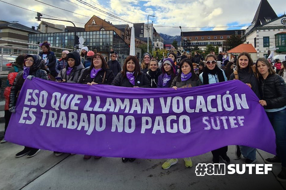 Como cada 8 de marzo, SUTEF adhirió al paro en las instituciones educativas de todos los niveles y modalidades, dando cobertura legal a las mujeres y disidencias trabajadorxs de la educación fueguina que participaron de la huelga.
