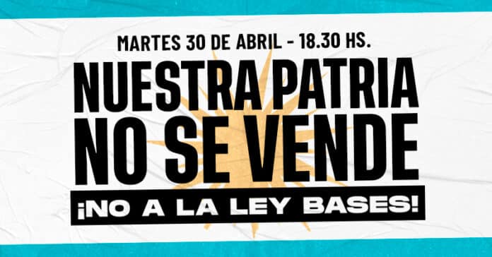🚫 La soberanía argentina, la industria nacional, el desarrollo científico y tecnológico, los recursos naturales, las empresas públicas, la cultura, el sistema previsional, la salud pública y la educación pública están en juego.