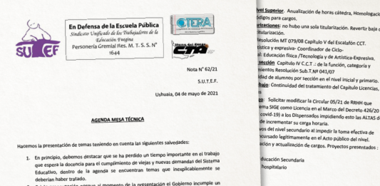 El SUTEF presentó mediante nota una agenda de temas en la Mesa Técnica realizada en el día de hoy, luego de casi dos meses sin respuestas a los pedidos de convocatoria. El sindicato realizó consideraciones previas que transcribimos a continuación junto a la agenda: En principio, debemos destacar que se ha perdido un tiempo importante … Sigue leyendo Agenda de Temas y consideraciones del SUTEF en la Mesa Técnica