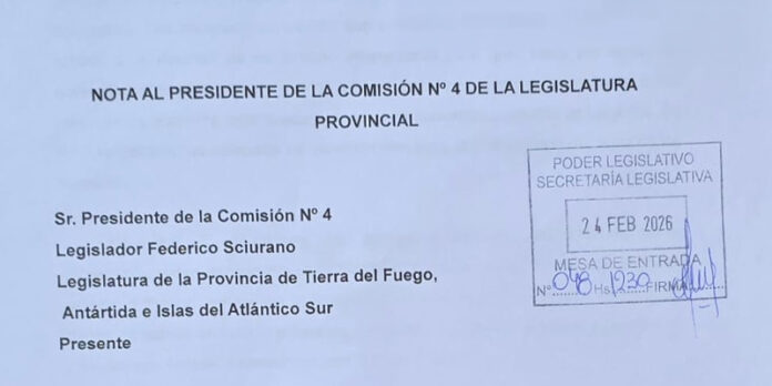 En el marco del paro provincial de 48 horas con movilización, el Sindicato Unificado de las Trabajadoras y Trabajadores de la Educación Fueguina (SUTEF) presentó una nota formal al legislador Federico Sciurano, presidente de la Comisión de Educación, con copia a los presidentes de todas las comisiones. El documento solicita impulsar el tratamiento del proyecto de Ley de Financiamiento Integral del Sistema Educativo Provincial, presentado originalmente hace dos años.