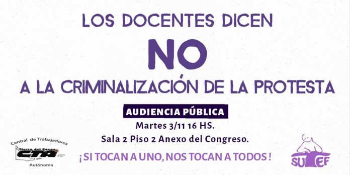 NoticiasAudiencia Pública en el Congreso de la Nación Audiencia Pública en el Congreso de la Nación publicado el 2 noviembre, 2015 FacebookTwitterPinterestWhatsAppEmailImpresiónTelegramCopy URL Últimos artículos Comunicados / Informes / Noticias SUTEF solicitó la continuidad de las horas cátedra de docentes en toda la provincia El Sindicato Unificado de Trabajadoras y Trabajadores de la Educación Fueguina (SUTEF) presentó una... 17 diciembre, 2025 Comunicados / Informes / Noticias 18/12 – Turno tarde: desobligamos y movilizamos contra la reforma laboral En el marco de la jornada nacional de lucha convocada para el jueves 18... 16 diciembre, 2025 Más publicaciones Noticias Se conformó el Frente Nacional Democrático por la Educación Pública En un contexto de crisis educativa y laboral, se llevó a cabo el primer... 15 diciembre, 2025 Noticias SUTEF denuncia falta de instrumento legal y exige al Ministro garantías laborales para el Jardín nro. 27 El pasado martes 21 de octubre, el Sindicato Unificado de las Trabajadoras y Trabajadores... 27 octubre, 2025 Noticias Agenda gremial ️ Lunes 8 y martes 9 de septiembre Asamblea o desobligación interna en los tres... 8 septiembre, 2025
