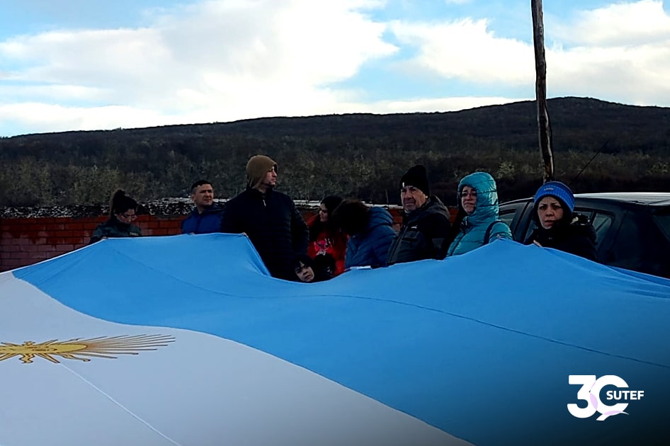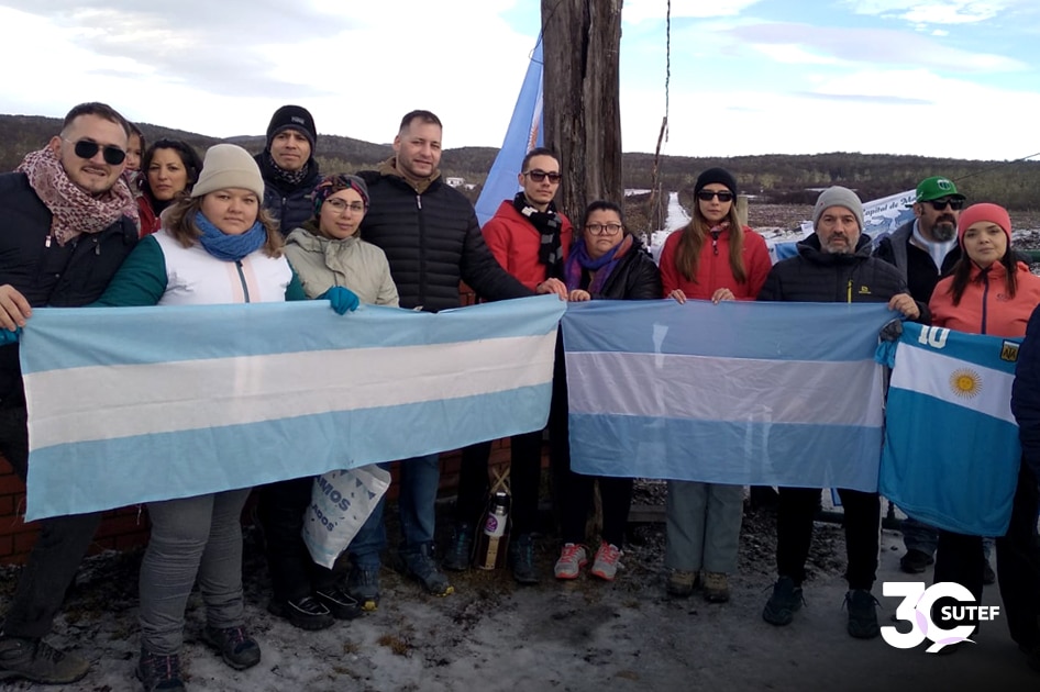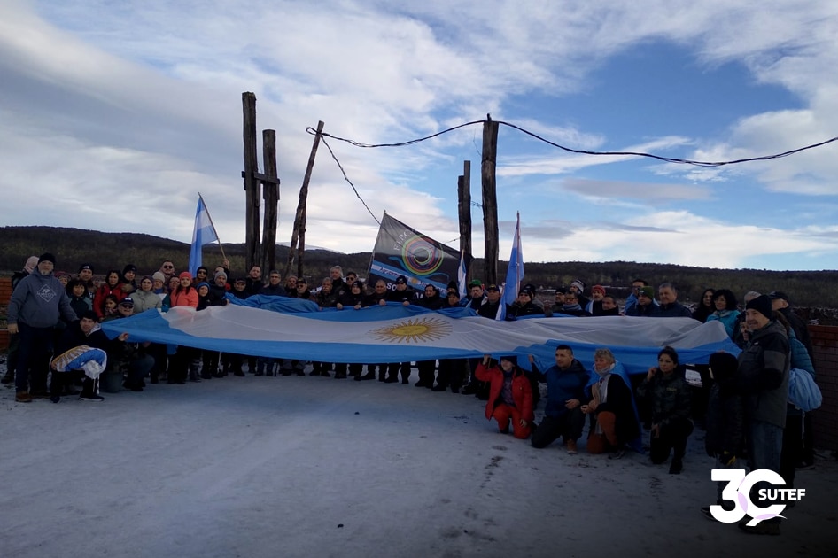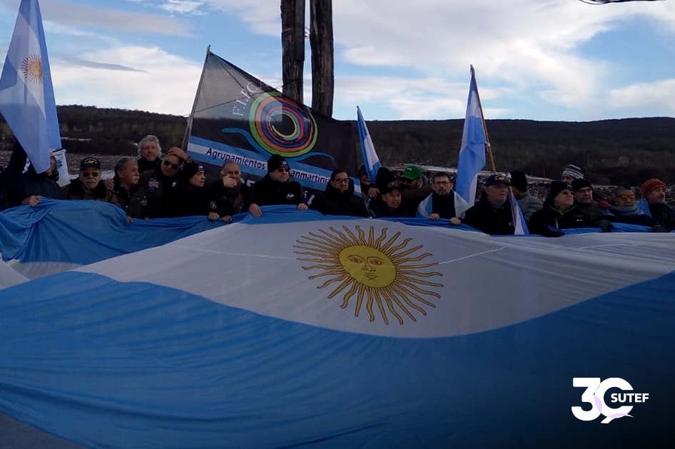 El sábado 29 de julio, una delegación del SUTEF participó del banderazo en repudio a la instalación del radar inglés en la provincia de Tierra del Fuego, Antártida e Islas del Atlántico Sur y por la reafirmación de soberanía sobre nuestras Islas Malvinas.