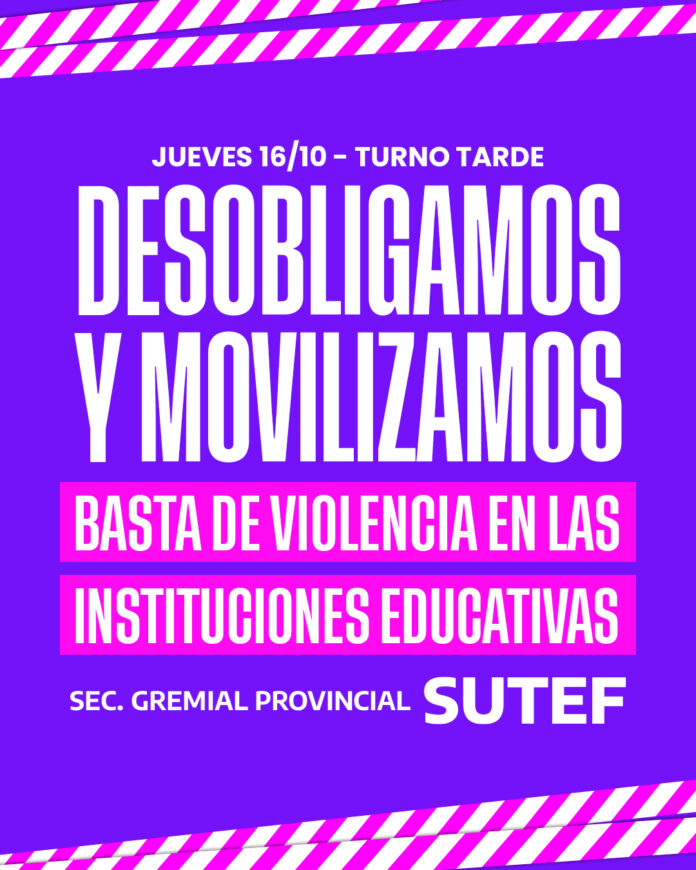 Convocamos a toda la docencia a exigir a las autoridades del Ministerio de Educación de la provincia que tomen las medidas necesarias para garantizar la seguridad y la integridad de la comunidad educativa.