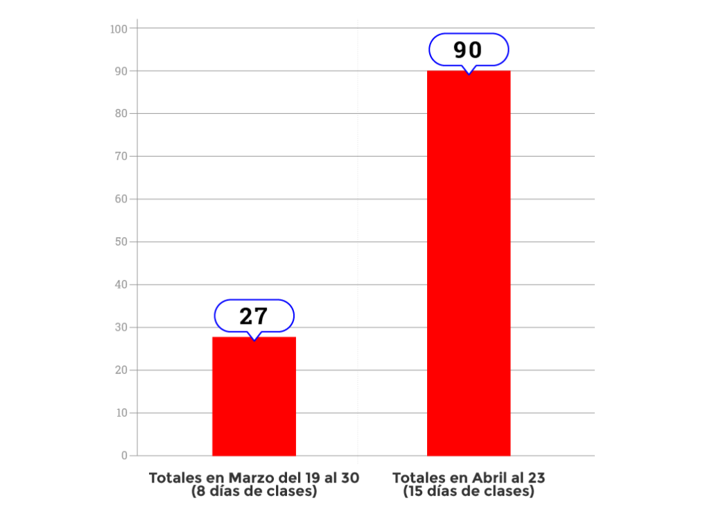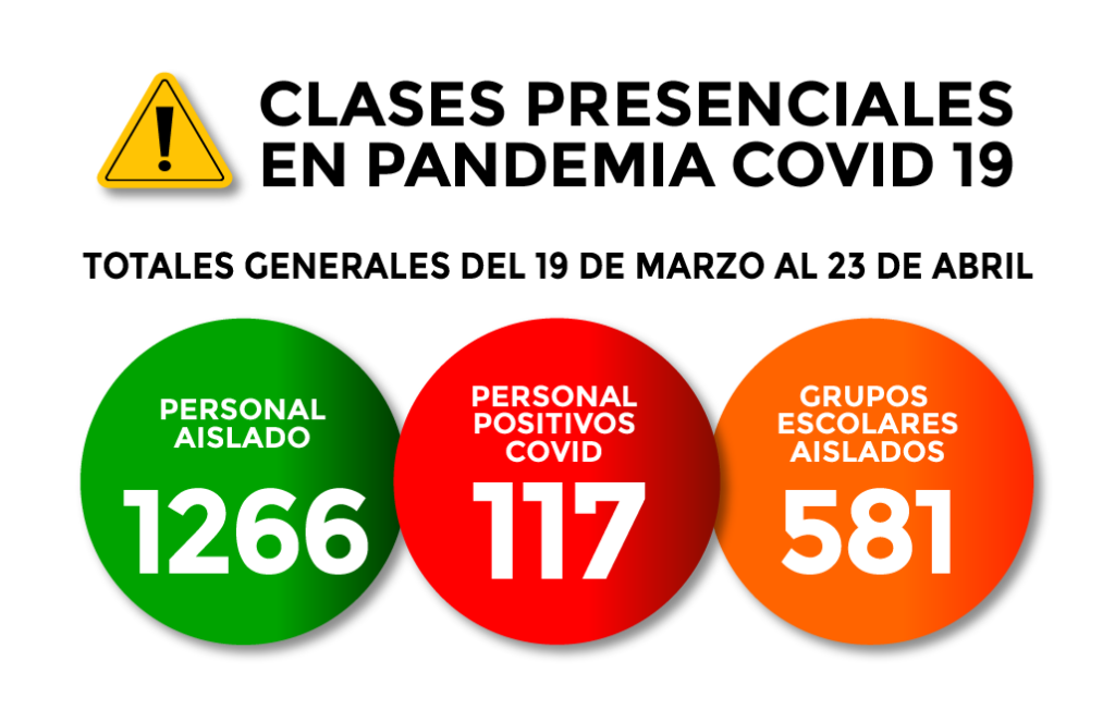 Al 23 de abril relevamos 117 casos positivos de personal docente y no docente en las instituciones escolares desde que implementamos el Botón Rojo el 19 de marzo.