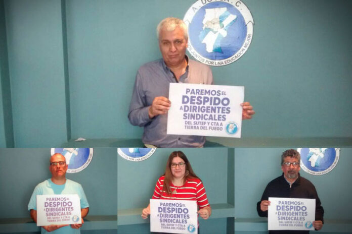 Noticias CAMPAÑA: PAREMOS EL DESPIDO A DIRIGENTES SINDICALES 28 septiembre, 2016 FacebookXPinterestWhatsAppEmailImpresiónTelegramCopy URL Los compañeros de ADOSAC dicen PRESENTE en la Campaña contra las exoneraciones de los DIRIGENTES SINDICALES de SUTEF y CTA AUTÓNOMA DE TIERRA DEL FUEGO.