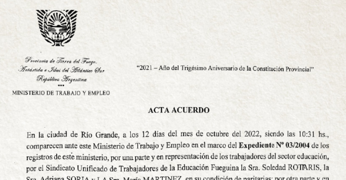 Cabe destacar que este fue un trabajo realizado por medio de asambleas y encuentros virtuales en los Niveles Inicial y Primario, en los cuales la docencia realizó aportes que enriquecieron y posibilitaron la firma de este acuerdo.