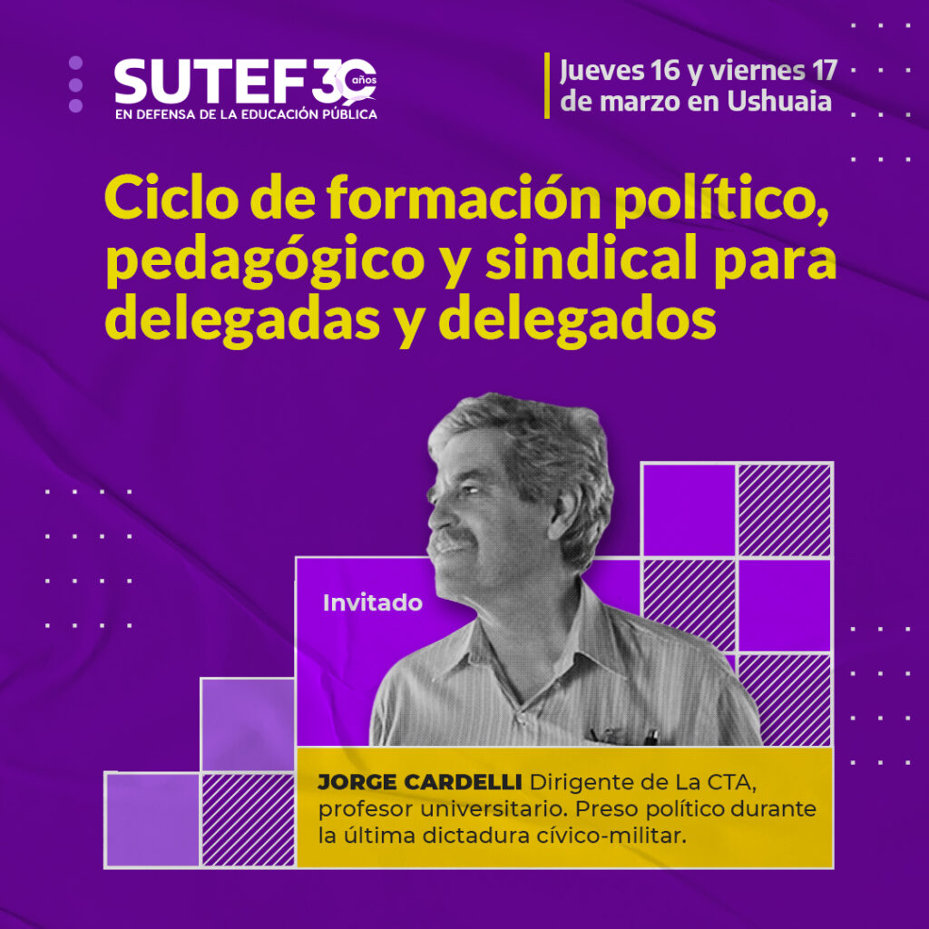El encuentro tendrá como disertante al profesor Jorge Cardelli, dirigente de La CTA – preso político durante la última dictadura cívico-militar, y la participación de docentes que fundaron al SUTEF.