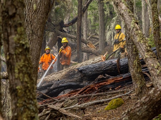 Ya se entregaron las primeras donaciones de agua para brigadistas que se encuentran combatiendo el incendio forestal en Tolhuin, en el centro de la isla, en zonas adyacentes a la ex estancia Carmen.