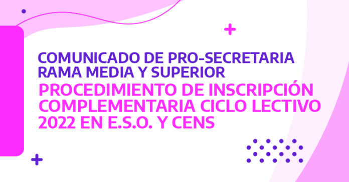 La resolución M.E.C. C. Y T. Nro. 0060 /2022 habilita la INSCRIPCIÓN COMPLEMENTARIA para el Ciclo Lectivo 2022 en E.S.O. y CENS desde 1 al 31 de marzo vía WEB.