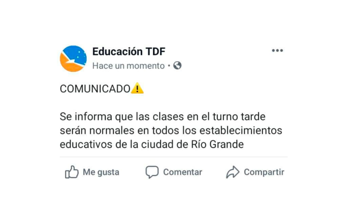 Hacemos responsables a la Gobernadora Bertone, al Ministro Diego Romero, Susana Álvarez por la seguridad de estudiantes y docentes que deberán trasladarse a los establecimientos escolares con ráfagas que superan los 100 km/h con el riesgo que esto implica.