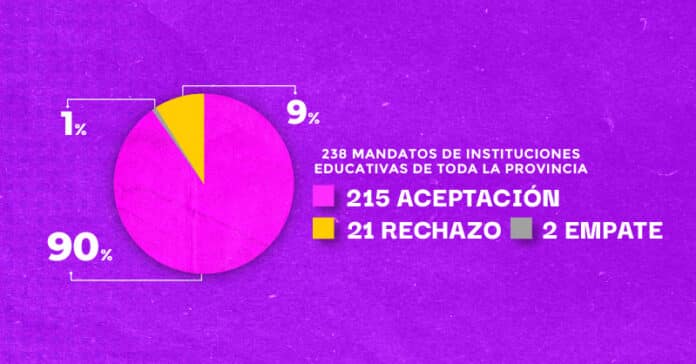🔎 Del total de los mandatos presentados: 215 resultaron por aceptación (90%), 2 por empate (1%) y 21 por rechazo (9%). Por amplia mayoría se aprobó la propuesta.