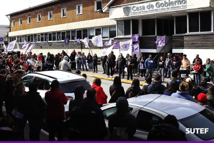 Este viernes 14 de febrero, docentes de las ciudades de Río Grande, Tolhuin y Ushuaia se llevaron adelante las desobligaciones con movilizaciones en los turnos mañana y tarde, reclamando al gobernador la inmediata reapertura de las paritarias salariales y un salario que garantice condiciones de vida dignas.