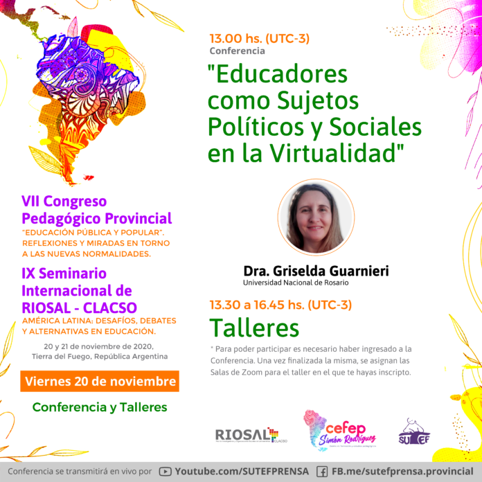 En el Congreso Pedagógico Provincial y Seminario Internacional organizados por SUTEF-Cefep y RIOSAL-CLACSO se destacan las 12 salas de los talleres del Congreso Provincial y las 5 salas de los talleres del Seminario Internacional donde la docencia fueguina, quien construyó la pedagogía en esta pandemia, podrá participar activamente y dejar un registro de sus experiencias, plasmando su perspectiva en la construcción de las nuevas normalidades educativas para el futuro.