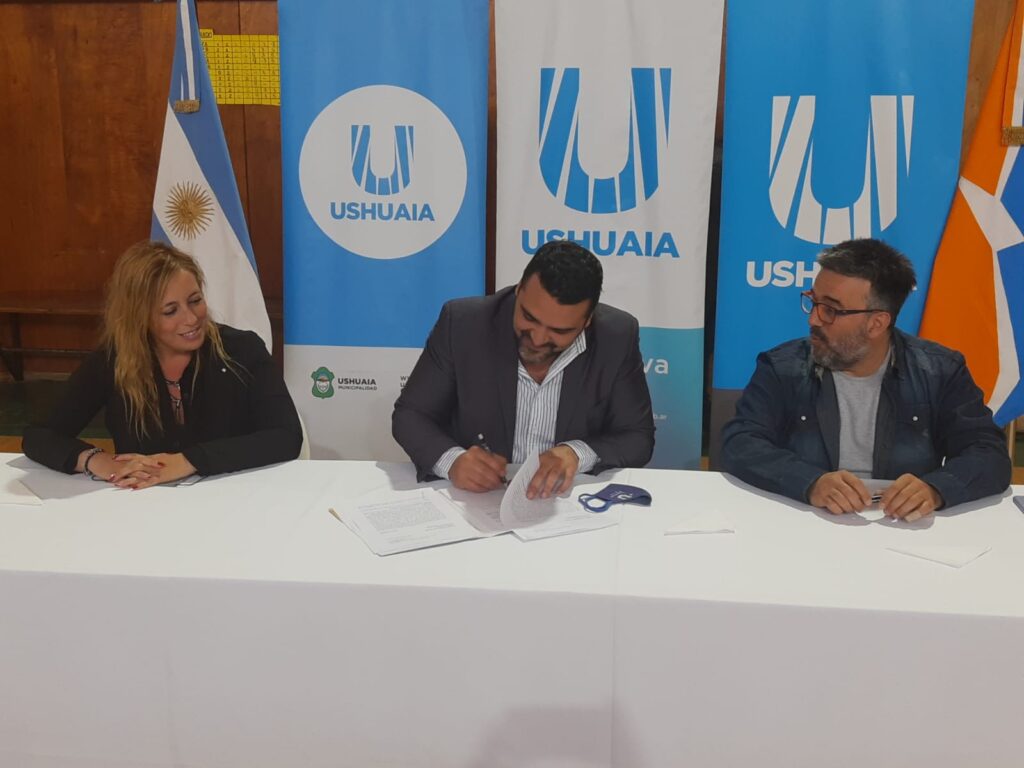Durante la tarde del día de hoy, jueves 11 de noviembre de 2021, el Intendente del Municipio de Ushuaia, Walter Vuoto, el Secretario General del SUTEF y de la CTA Autónoma de la Provincia, Horacio Catena y la Secretaria de Hábitat y Ordenamiento Territorial de la Municipalidad de Ushuaia, Lorena Henriques Sanches firmaron el convenio de colaboración y cooperación que apunta a que las y los docentes de Ushuaia puedan acceder más fácilmente a todas líneas y programas de acceso a la vivienda que el Gobierno Nacional tiene vigentes. Asimismo se firmó el compromiso de incorporación de 200 soluciones habitacionales para el sector docente a la segunda etapa del Barrio San Martín de la ciudad de Ushuaia. Ambos convenios llevarían a concretar el acceso del derecho de la vivienda digna a 400 docentes de la ciudad de Ushuaia. También estuvieron presentes los representantes de la Cooperativa G y P de Córdoba que viajaron para estos encuentros, ellos son: el compañero Arquitecto Héctor Bustamante, el compañero Presidente de la Cooperativa Eduardo Martín y el compañero Licenciado de Marketing y Organización de empresas, Heber Ferreyra. Además acompañaron el encuentro la Comisión Directiva del SUTEF, el Equipo de Viviendas y una importante cantidad de compañeras y compañeros futuros beneficiarios.