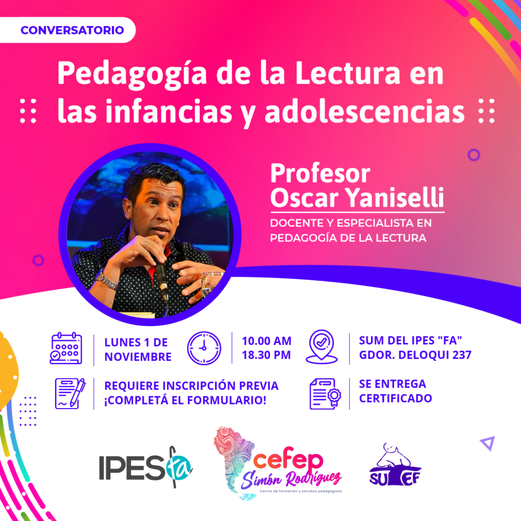 📖 Invitamos a participar del Conversatorio «Pedagogía de la Lectura en las infancias y adolescencias» con el especialista en Pedagogía Prof. Oscar Yaniselli.