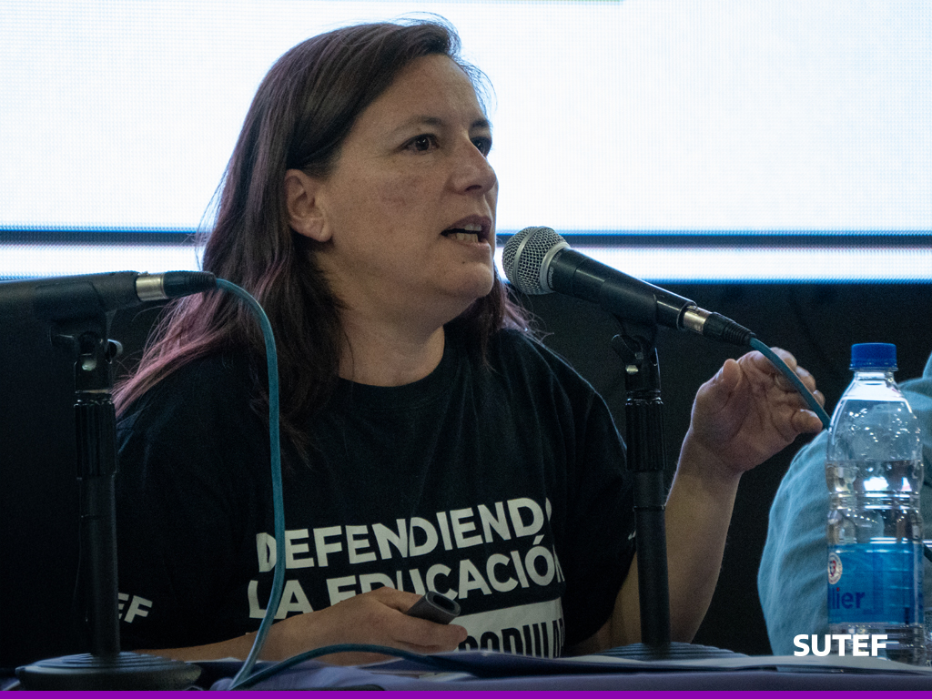Seguidamente Juliana Villafain, prosecretaria de Nivel Secundario y Superior del SUTEF, presentó un análisis sobre el presente y el futuro del trabajo docente en el nivel secundario.
