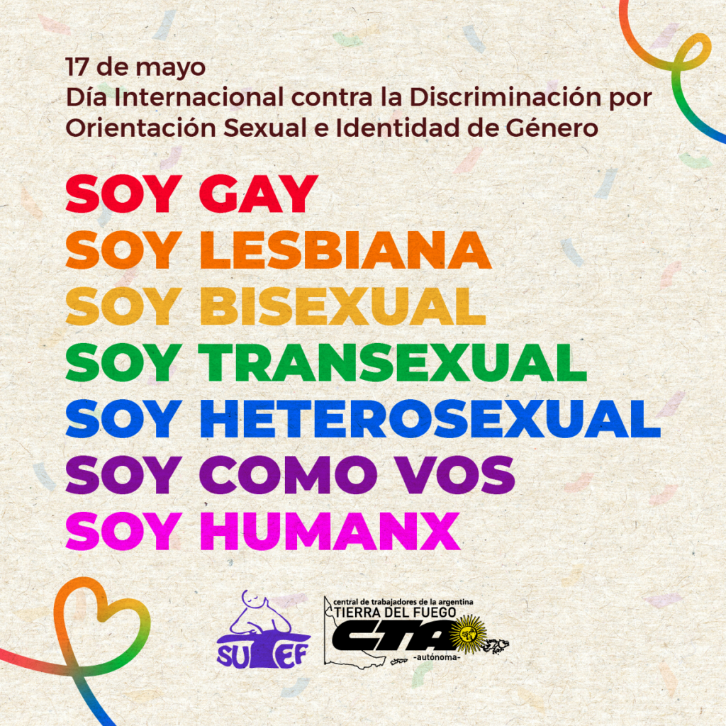 Desde el SUTEF reafirmamos nuestro compromiso para escuelas libres de violencia y discriminación a las personas con diversas identidades de género y orientaciones sexuales, donde se garanticen todos los derechos y se reconozcan, respeten e integren a todxs.