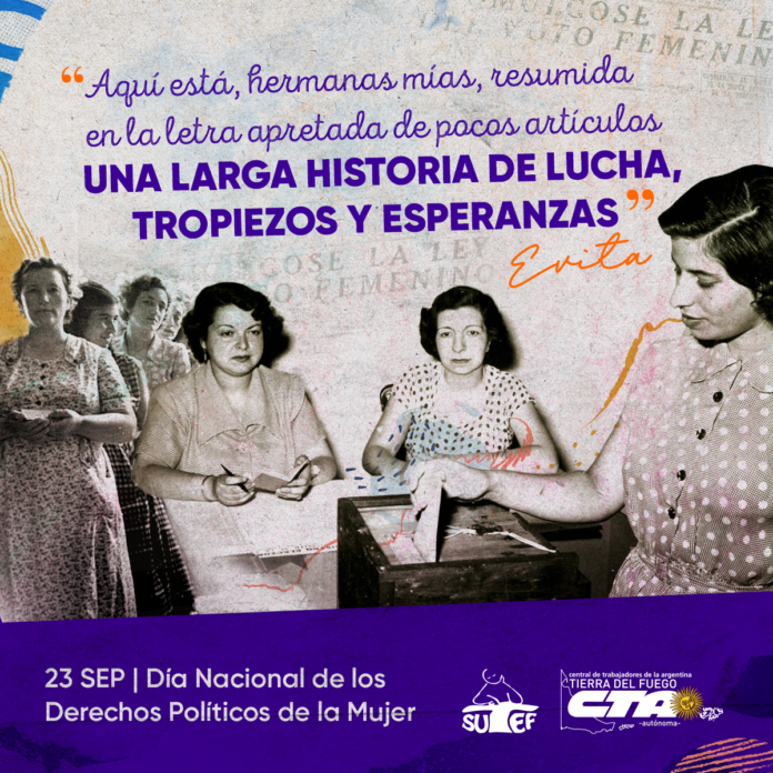 En el día de nuestros derechos políticos como mujeres trabajadoras instamos a seguir en el camino de lucha por más y mejores derechos para las mujeres y feminidades.