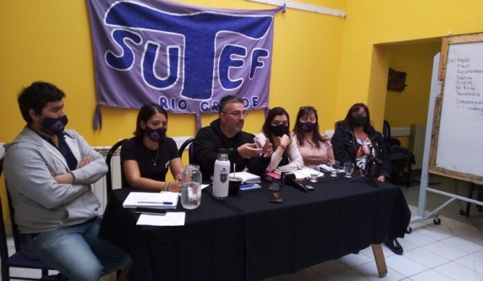 Hoy por la mañana, en la sede de la seccional Río Grande del SUTEF, la conducción del gremio –encabezada por el secretario General, Horacio Catena- brindó una conferencia de prensa para hacer un repaso por el reclamo salarial, la situación de la OSEF, el pedido de volver al régimen jubilatorio que tenía el sector antes del paquetazo de leyes de Rosana Bertone y el estado de los edificios escolares.