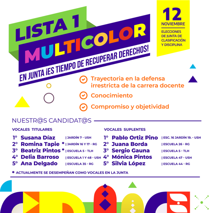 📄 * La *Lista 1 Multicolor* es la que impulsa nuestra organización en representación de la docencia fueguina.