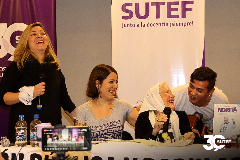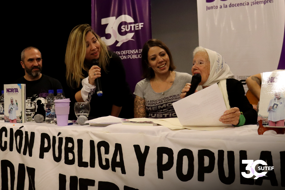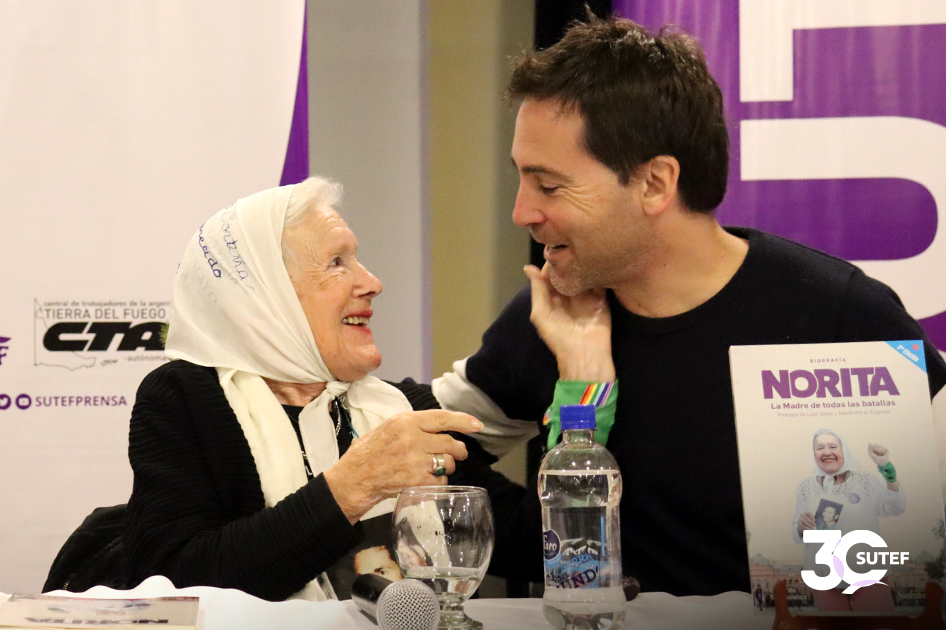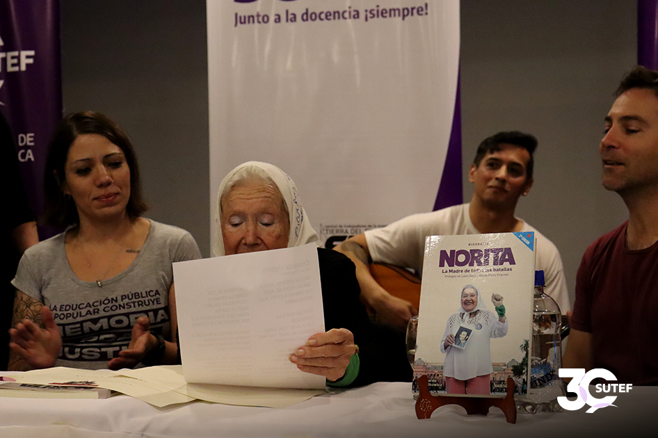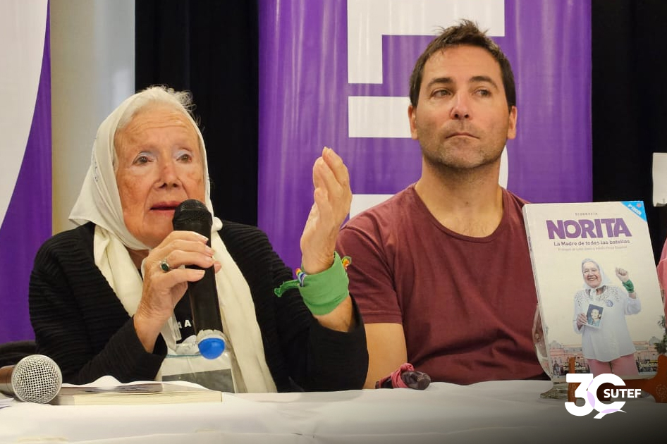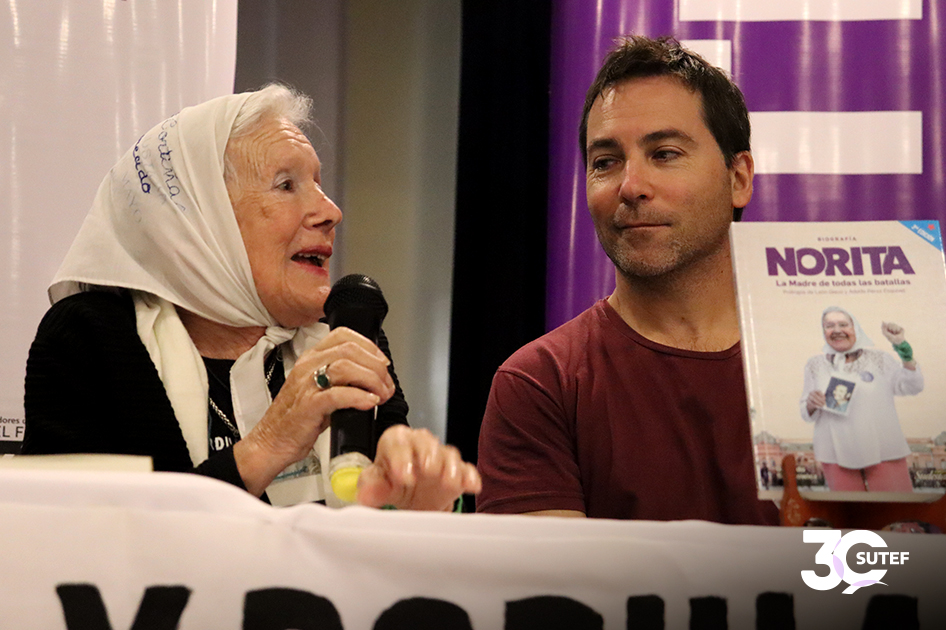 Este jueves 30 de marzo, en el SUM del IPES «Florentino Ameghino» se presentó el libro «Norita Cortiñas: la madre de todas las batallas» de Editorial Sudestada. La presentación, organizada por SUTEF, contó con la presencia de Nora Cortiñas, Madre de Plaza de Mayo Línea Fundadora, y el periodista y autor de la biografía, Gerardo Szalkowicz.