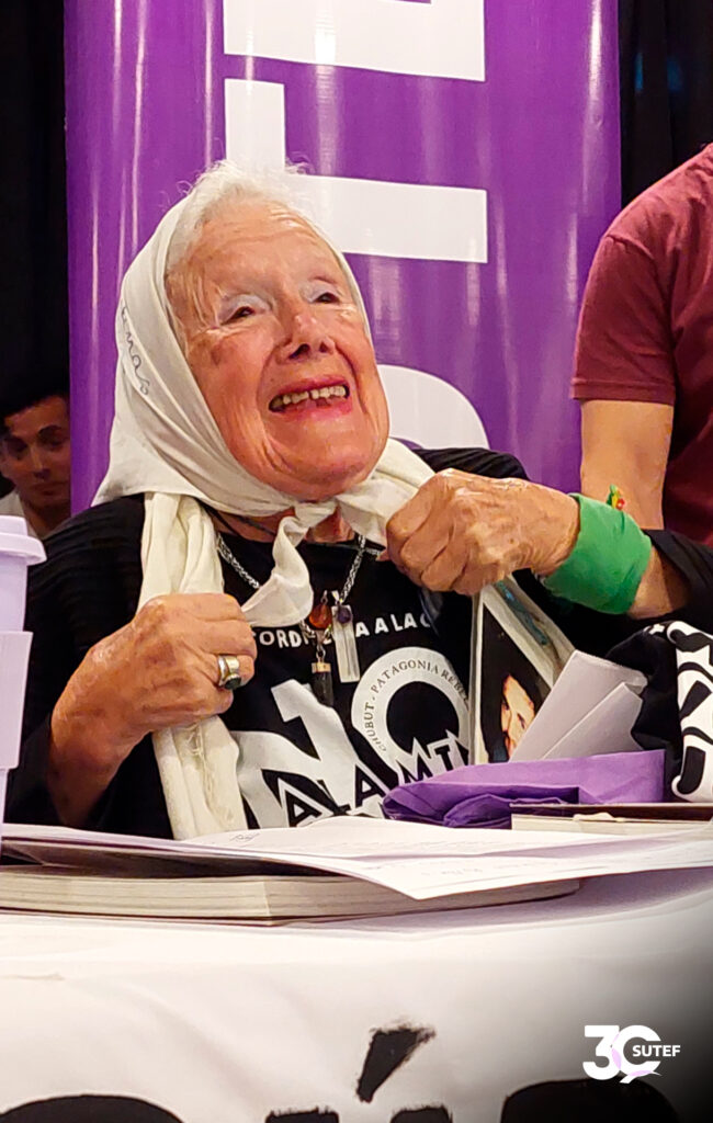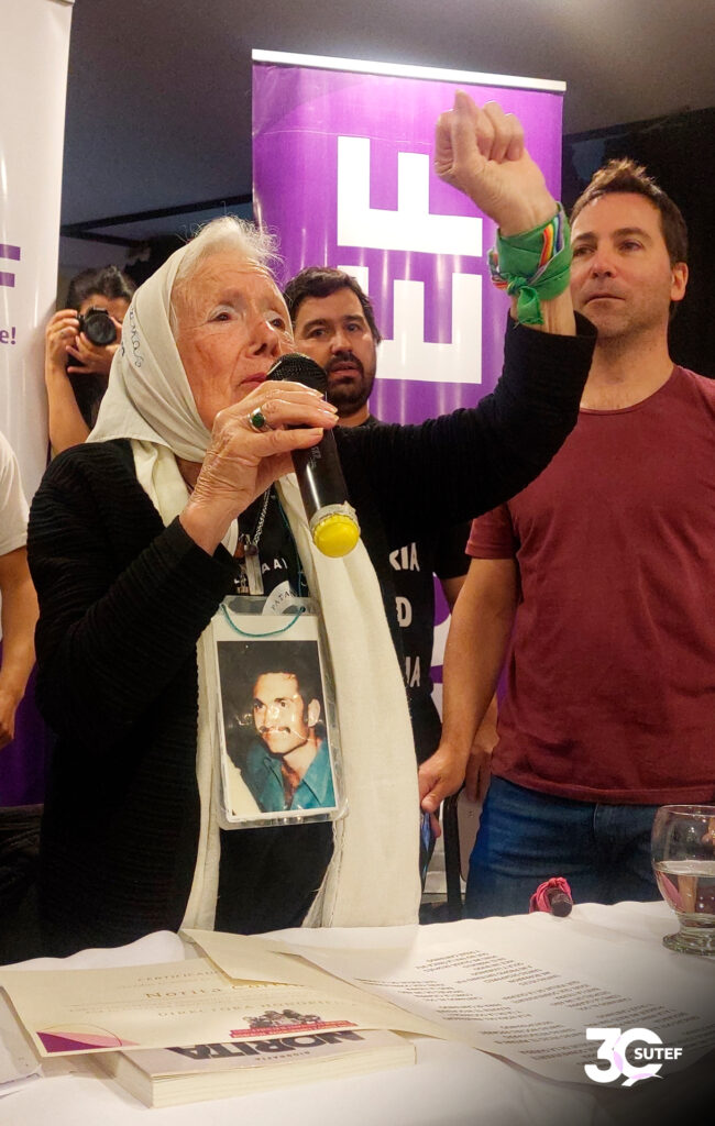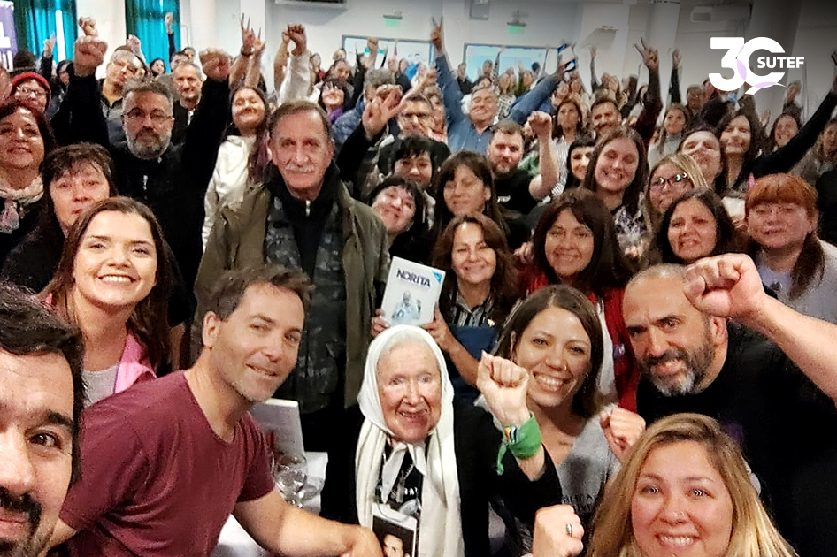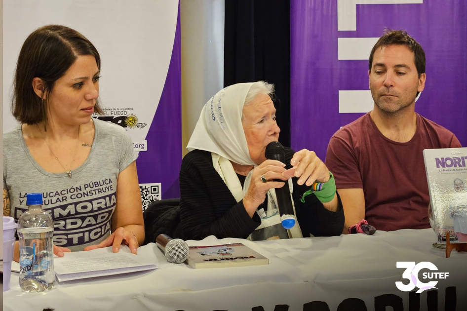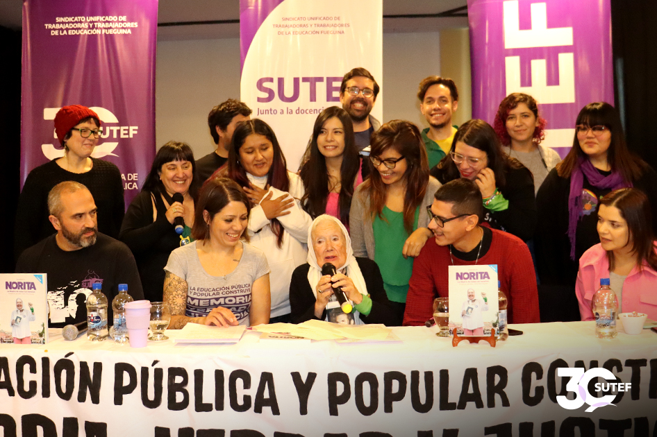 Este jueves 30 de marzo, en el SUM del IPES «Florentino Ameghino» se presentó el libro «Norita Cortiñas: la madre de todas las batallas» de Editorial Sudestada. La presentación, organizada por SUTEF, contó con la presencia de Nora Cortiñas, Madre de Plaza de Mayo Línea Fundadora, y el periodista y autor de la biografía, Gerardo Szalkowicz.