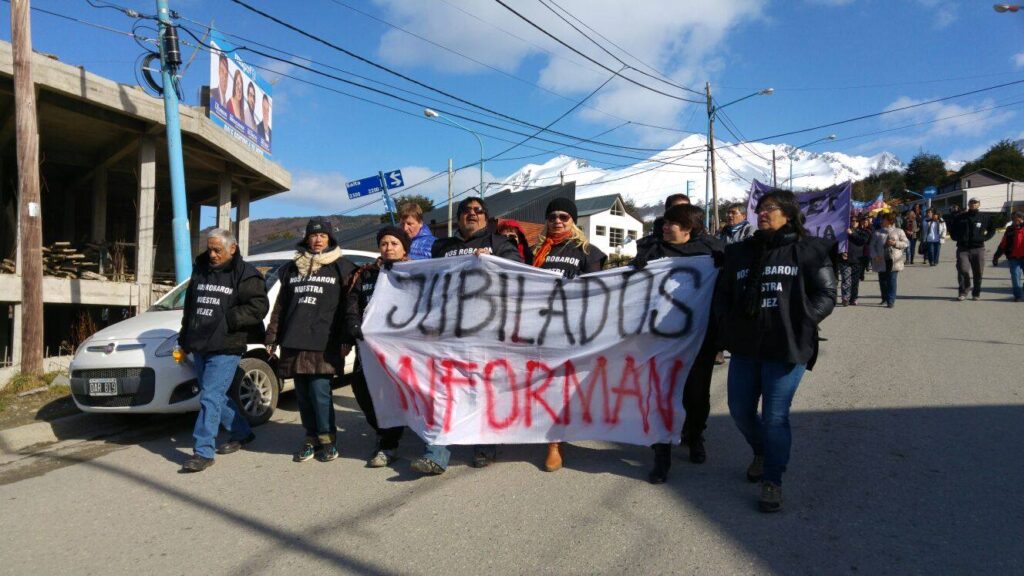 Tanto en Ushuaia como en Río Grande, jubilados y trabajadores en actividad marcharon juntos reclamando por el pago en tiempo y forma de los aportes y contribuciones para garantizar el pago a los jubilados y el pleno funcionamiento de la obra social.