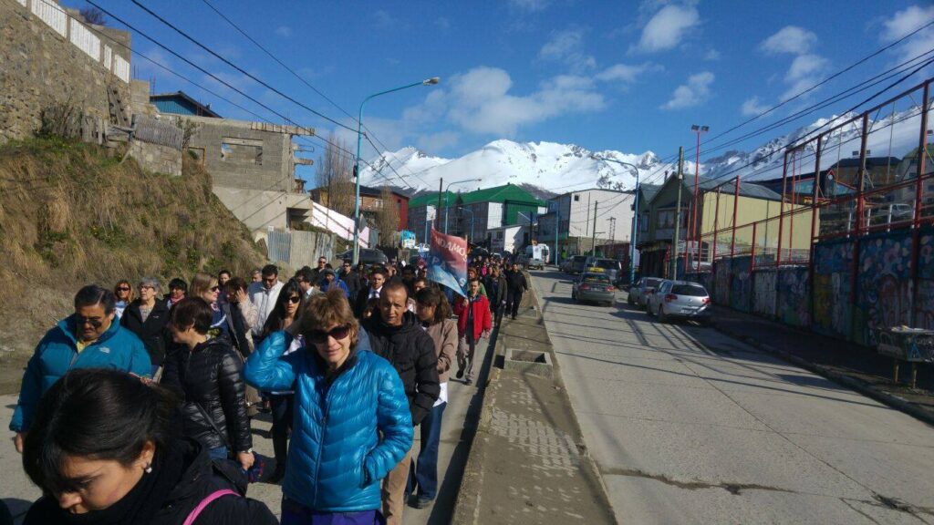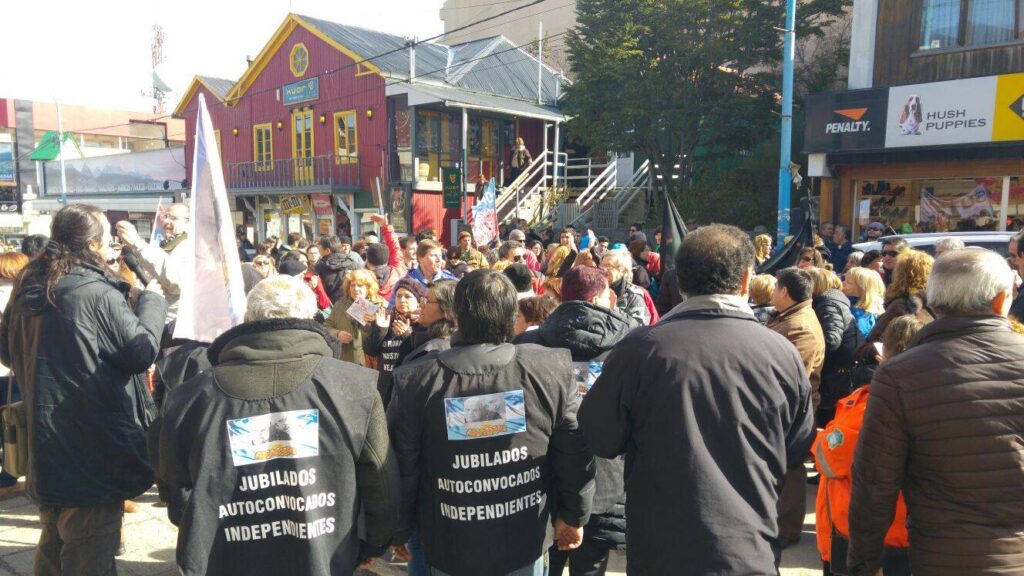 En la ciudad de Ushuaia se marchó desde el IPAUSS hasta la Casa de Gobierno, pasando por el Centro Akainik y la mesa de jubilados (frente a la Municipalidad). En el edificio gubernamental hicieron uso de la palabra, en primer lugar, Patricia Blanco por los jubilados autoconvocados, Antonio Delgado por ASEOM, Sandra Esperón por SOEM, José Gómez por AFEP, Nicolai por el Centro de Jubilados Akainik, Segundo Rodríguez por Jubilados de ATE y Horacio Catena por SUTEF y CTA.
