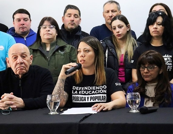 Luana Pereira, Secretaria de Prensa del SUTEF fue la encargada de abrir la conferencia de prensa con la lectura de un documento detallando las graves consecuencias que los tarifazos del Gobierno de Milei están provocando en la sociedad.
