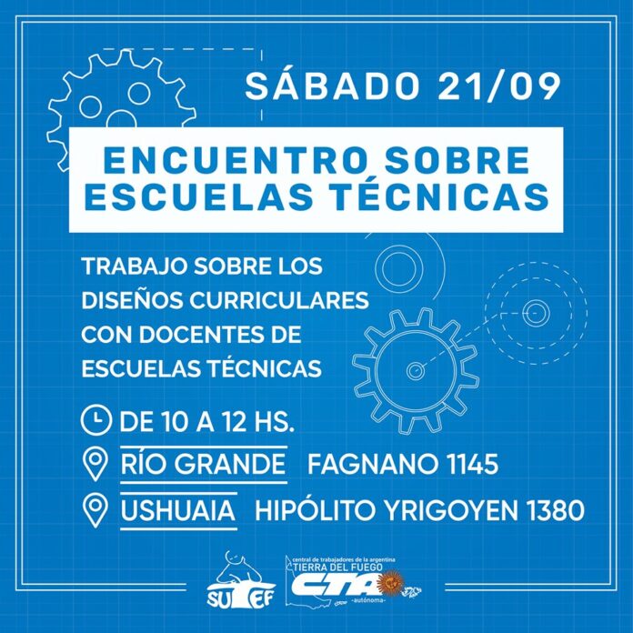 Convenio Colectivo de TrabajoConvocatoriasEncuentro de docentes de Escuelas Técnicas en toda la provincia Encuentro de docentes de Escuelas Técnicas en toda la provincia publicado el 16 septiembre, 2019 FacebookTwitterPinterestWhatsAppEmailImpresiónTelegramCopy URL Sábado 21 de septiembre en las seccionales de Ushuaia y Río Grande. Esperamos a todos y todas Últimos artículos Comunicados / Informes / Noticias Solidaridad con la docencia de la Escuela Especial Kayú Chénèn El Sindicato Unificado de Trabajadoras y Trabajadores de la Educación Fueguina (SUTEF) expresa su... 1 noviembre, 2025 Comunicados e informes Informe de mesa paritaria salarial y consulta con la docencia Informe de Mesa Paritaria Salarial Este jueves 30 de octubre, se llevó adelante en la... 30 octubre, 2025 Más publicaciones Convocatorias CCT: reunión provincial con docencia de los Centros Populares de Cultura 🙋♀️ Se convoca a la docencia de los Centros Populares de Cultura a reunión... 2 julio, 2024 Convocatorias CCT: reunión provincial con maestras/os de lengua extranjera inglés 🙋♀️ Se convoca a maestras/os de lengua extranjera inglés de la provincia a participar... 17 junio, 2024 Convocatorias CCT: reunión provincial con bibliotecarias/os de Inicial, Primaria y Modalidades 🙋♀️ Se convoca a bibliotecarias/os de Inicial, primaria y modalidades de la provincia a... 6 junio, 2024