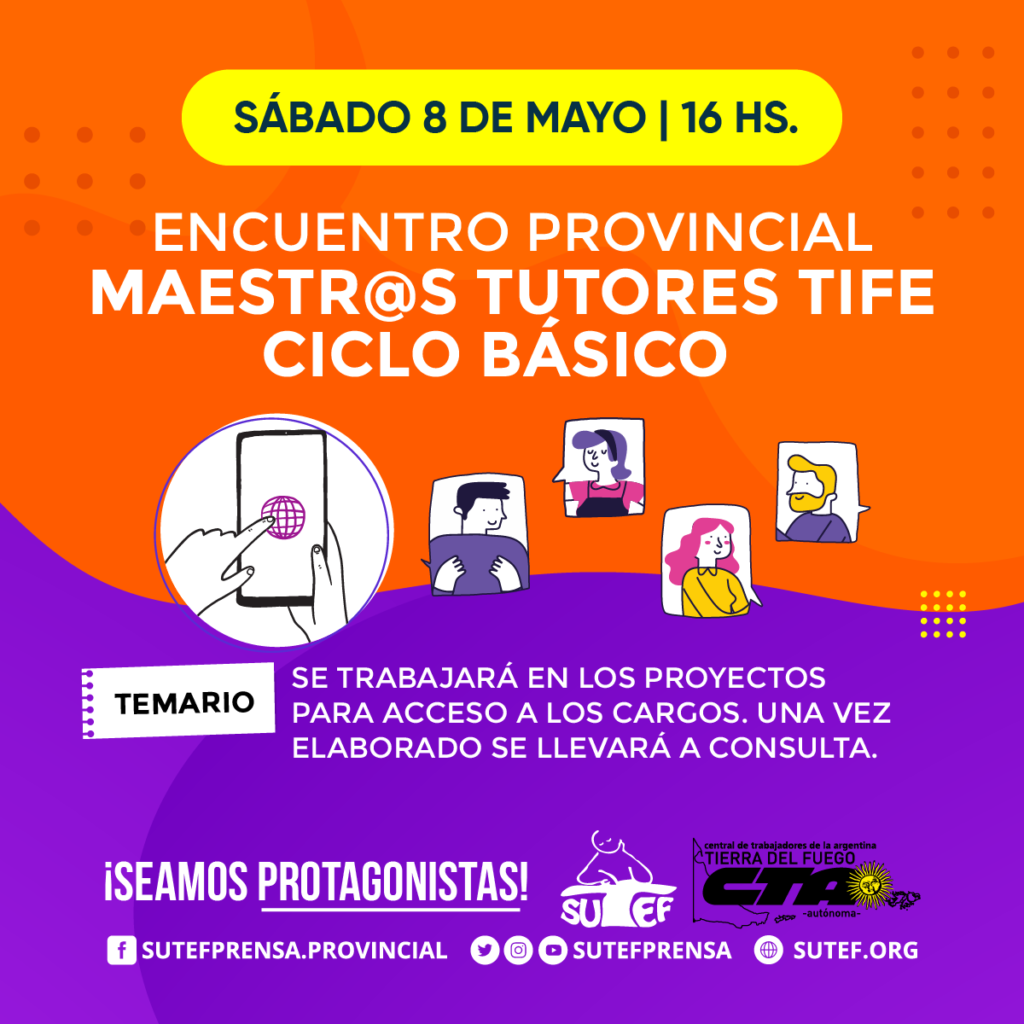 💬 Encuentro Provincial de Maestr@s Tutores TIFE Ciclo Básico 🗓 Sábado 8 de Mayo | 16 Hs.