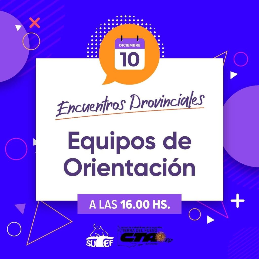 NoticiasConvenio Colectivo de TrabajoEncuentros SUTEF: Equipos de Orientación Encuentros SUTEF: Equipos de Orientación publicado el 9 diciembre, 2020 FacebookXPinterestWhatsAppEmailImpresiónTelegramCopy URL Convenio Colectivo de Equipos de OrientaciónJueves 10 de diciembre, 16:00 horas. Construyamos junt@s«Protagonizamos o nos protagonizan»Solicitá link de Zoom a Julio +54 9 11 5606-6032 ó Adriana +54 9 2964 60-5987 Últimos artículos Comunicados e informes 50 años del golpe genocida: ¡QUE DIGAN DÓNDE ESTÁN! Se cumplieron 50 años del inicio de la etapa más oscura de nuestra historia.... 25 marzo, 2026 Comunicados e informes 24/03 30 mil razones para marchar A 50 años del golpe cívico, eclesiástico y militar genocida, convocamos a la docencia... 23 marzo, 2026 Más publicaciones Convenio Colectivo de Trabajo SUTEF impugnó la Resolución Nro. 2388/2023 del M.E.C.C. y T. que vulnera derechos laborales de la docencia SUTEF impugnó la Res. Nro. 2388/2023 del Ministerio de Educación, Ciencia, Cultura y Tecnología... 11 julio, 2023 Convenio Colectivo de Trabajo SUTEF impugnó la Resolución Nro. 2635/2023 del M.E.C.C. y T. que vulnera los derechos laborales de la docencia El viernes 7 de julio, SUTEF impugnó la Res. Nro. 2635/2023 del Ministerio de... 11 julio, 2023 Convenio Colectivo de Trabajo Documento para debatir en la jornada institucional de fecha 27/06/2023 Teniendo en cuenta que el día martes 27 de junio de 2023 se llevará... 26 junio, 2023