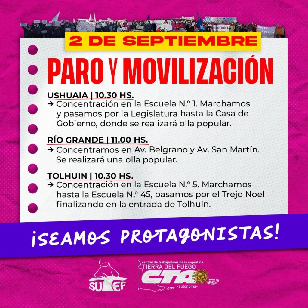 📣 ¡Este jueves 2 de septiembre paramos y nos movilizamos!