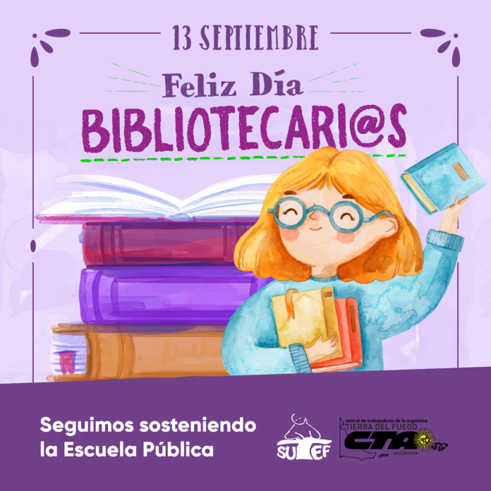 NoticiasFeliz día a todas y todos los bibliotecari@s Feliz día a todas y todos los bibliotecari@s publicado el 13 septiembre, 2020 FacebookTwitterPinterestWhatsAppEmailImpresiónTelegramCopy URL ¡Feliz día a todas y todos los bibliotecari@s que acercan la magia de los libros a las infancias! 🧡💚💜💛❤️ ¡Celebramos su presencia en cada escuela! Últimos artículos Comunicados / Informes / Noticias 06/11 – SUTEF convoca a congreso provincial de delegadas/os El Sindicato Unificado de Trabajadoras y Trabajadores de la Educación Fueguina (SUTEF) convoca a... 5 noviembre, 2025 Comunicados / Informes / Noticias Frente a otro hecho de violencia, el Jardín 18 se declara en estado de alerta y asamblea permanente Desde el Sindicato Unificado de Trabajadoras y Trabajadores de la Educación Fueguina (SUTEF) repudiamos... 5 noviembre, 2025 Más publicaciones Noticias SUTEF denuncia falta de instrumento legal y exige al Ministro garantías laborales para el Jardín nro. 27 El pasado martes 21 de octubre, el Sindicato Unificado de las Trabajadoras y Trabajadores... 27 octubre, 2025 Noticias Agenda gremial ️ Lunes 8 y martes 9 de septiembre Asamblea o desobligación interna en los tres... 8 septiembre, 2025 Noticias 05/09 Paro y marcha educativa provincial Por nuestro salario y la sanción urgente de la Ley de Financiamiento Educativo... 4 septiembre, 2025