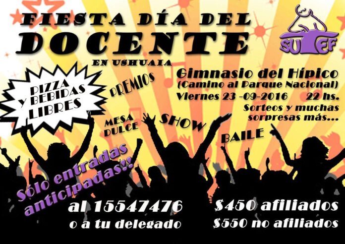 Ya estan en venta las entradas para festejar juntos el viernes 23 nuestro día! El valor es de $450 pesos para afiliados y $550 pesos para no afiliados. Los esperamos con pizzas y bebidas libre, buena música, baile y sorteos de premios! Cada diez entradas, una gratis! Como queremos compartir ese momento con todos y que nadie quede afuera, Podes pagarla en dos cuotas (para esta opción podes acercarte al sindicato).
