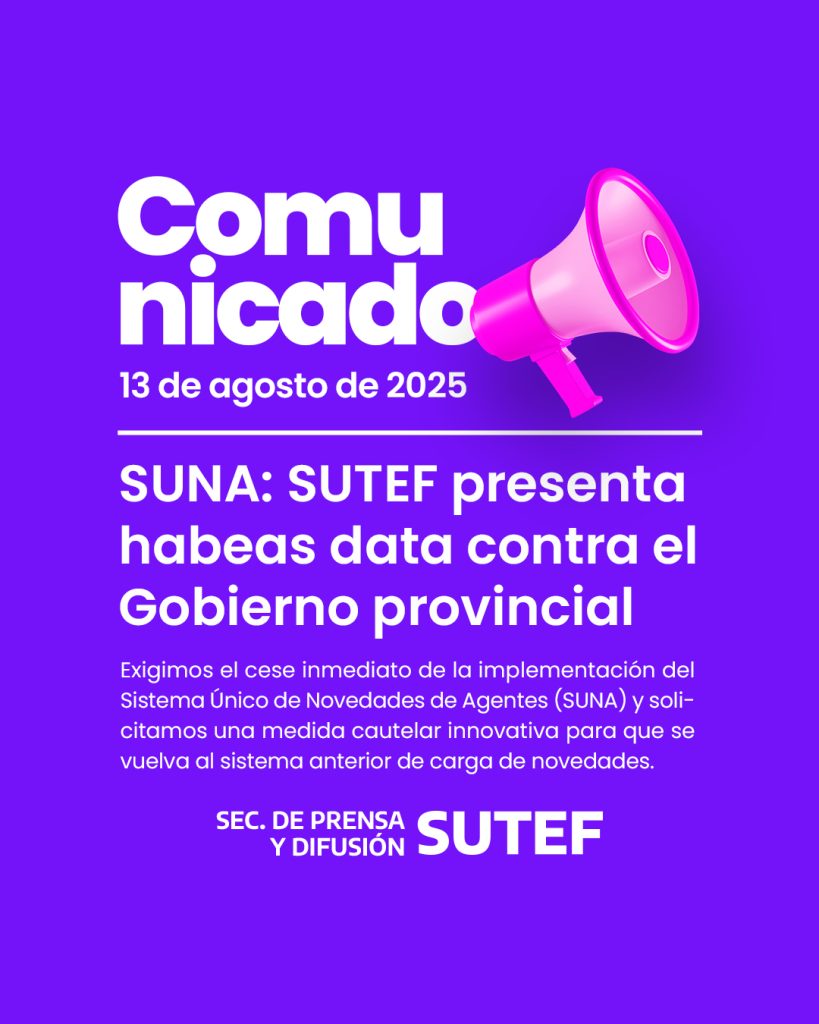 Hay que recordar que SUTEF ya había solicitado la suspensión cautelar del SUNA a través de un reclamo administrativo, pero no obtuvo una respuesta favorable.