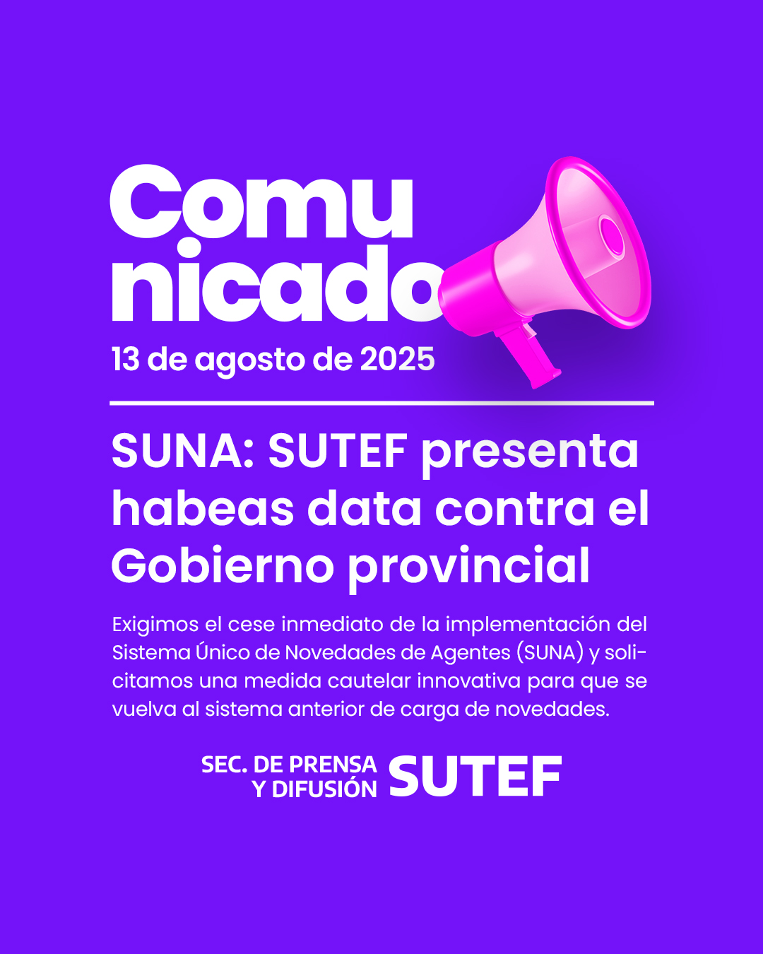 Hay que recordar que SUTEF ya había solicitado la suspensión cautelar del SUNA a través de un reclamo administrativo, pero no obtuvo una respuesta favorable.